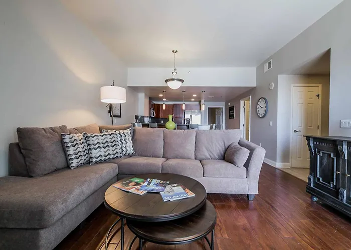 The spacious 2-bedroom Fremont Street Experience Apartment Las Vegas is nestled in the very heart of Las Vegas and is about 5 minutes' walk from the SlotZilla Zip Line. At this 107 m² apartment guests can lounge by a rooftop swimming pool or visit the Fremont Street Experience, which is located merely 400 metres away.